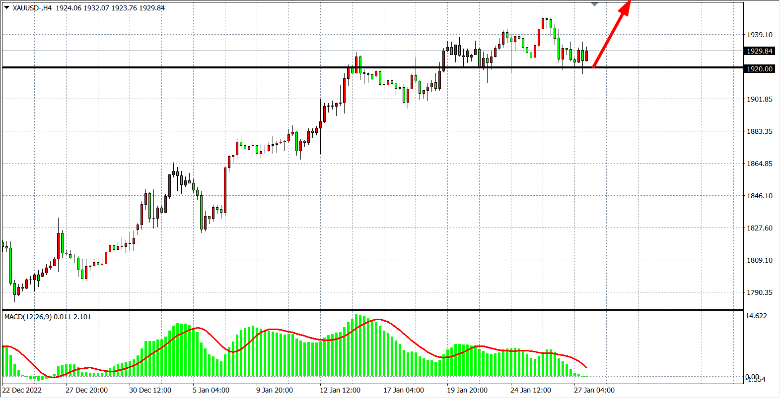 现货黄金XAUUSD    4小时图