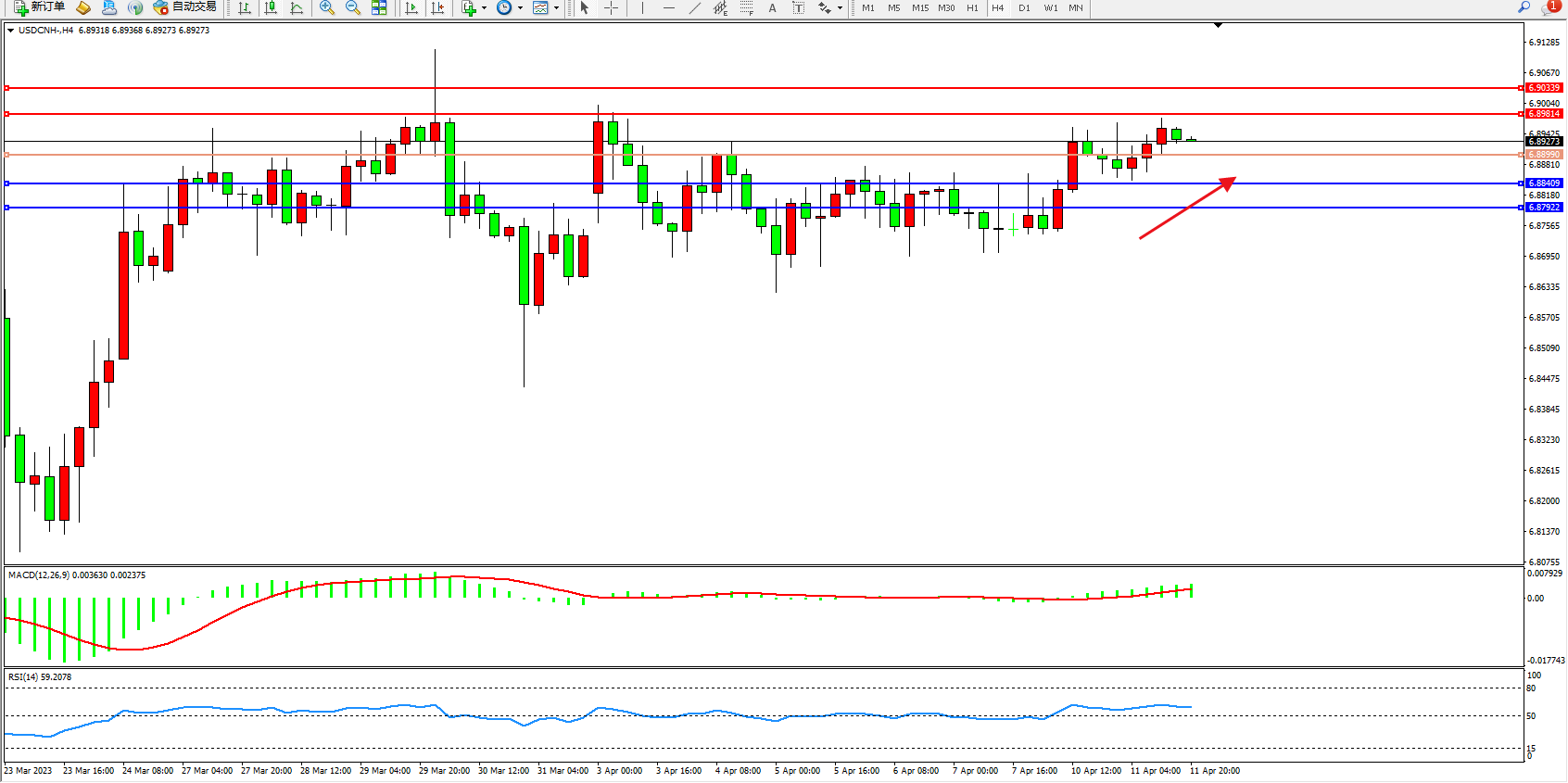 交易策略:6.88990上方看涨,目标6.89814、6.90339