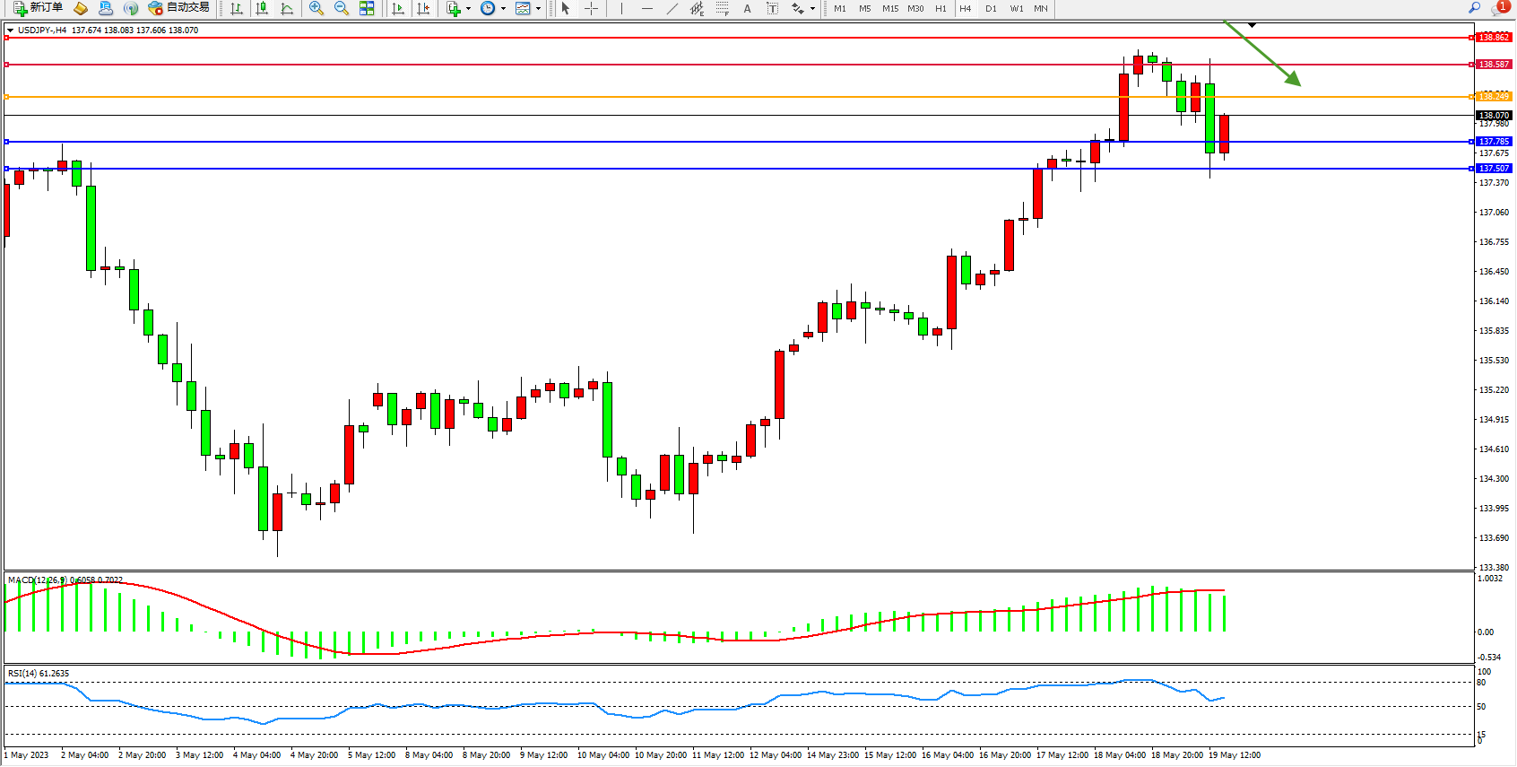 交易策略:138.249下方看跌,目标137.785 137.507