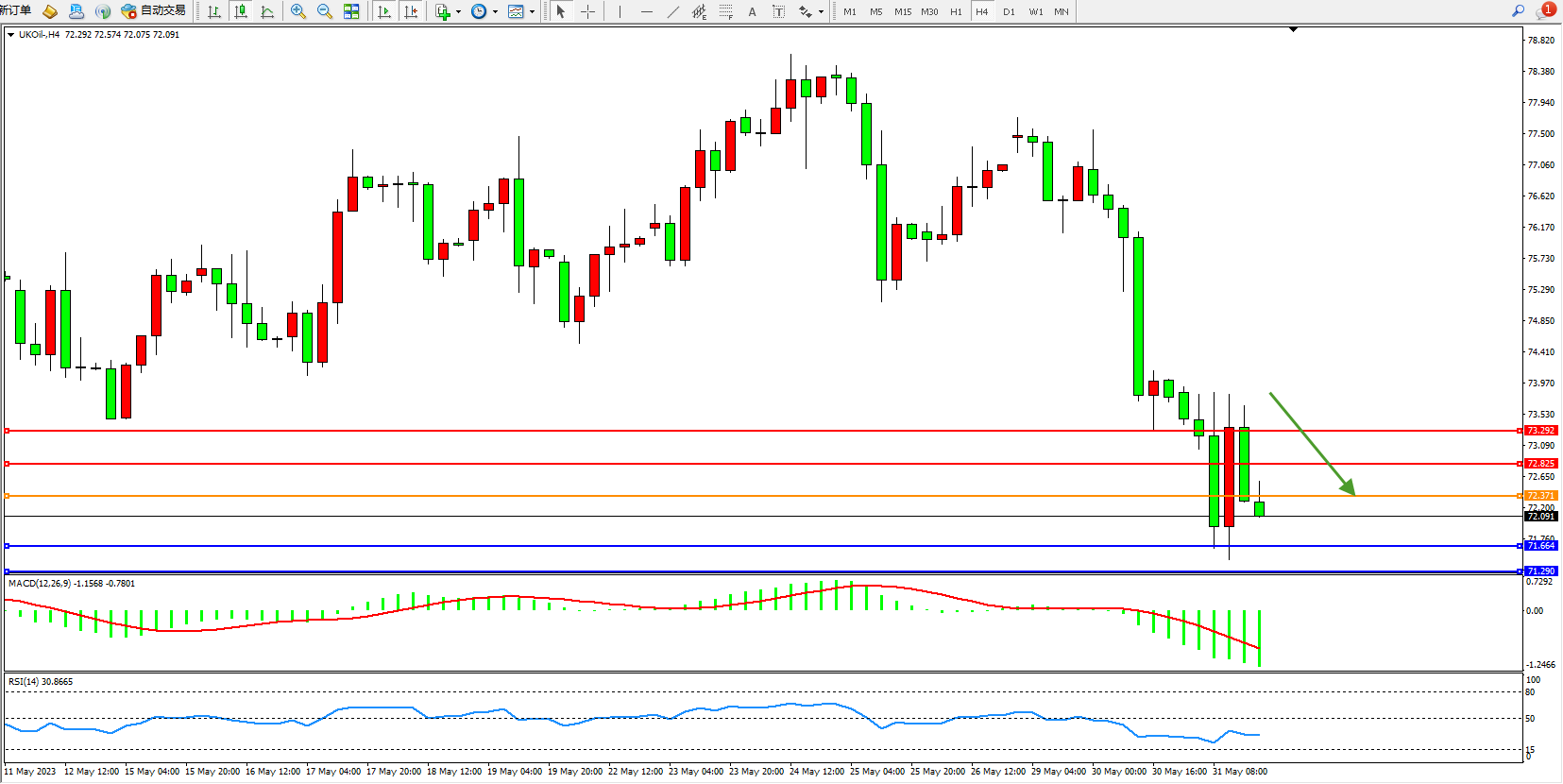 交易策略:72.371下方看跌,目标71.664 71.290