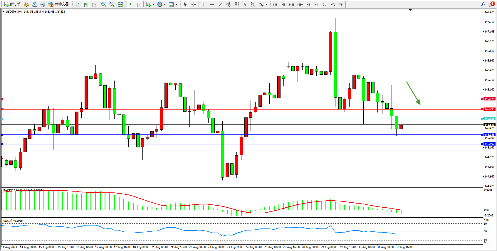 阻力位:145.798  145.975