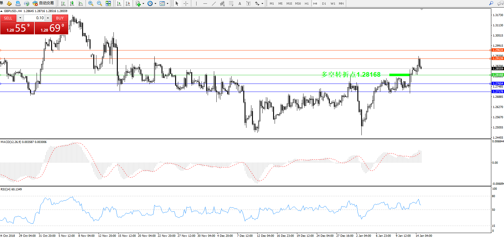 交易策略:1.28168上方看涨,目标1.291391.29634
