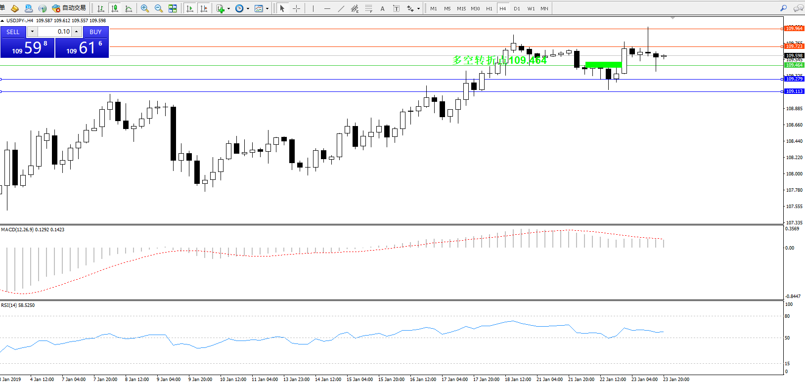 多空转折点:109.464