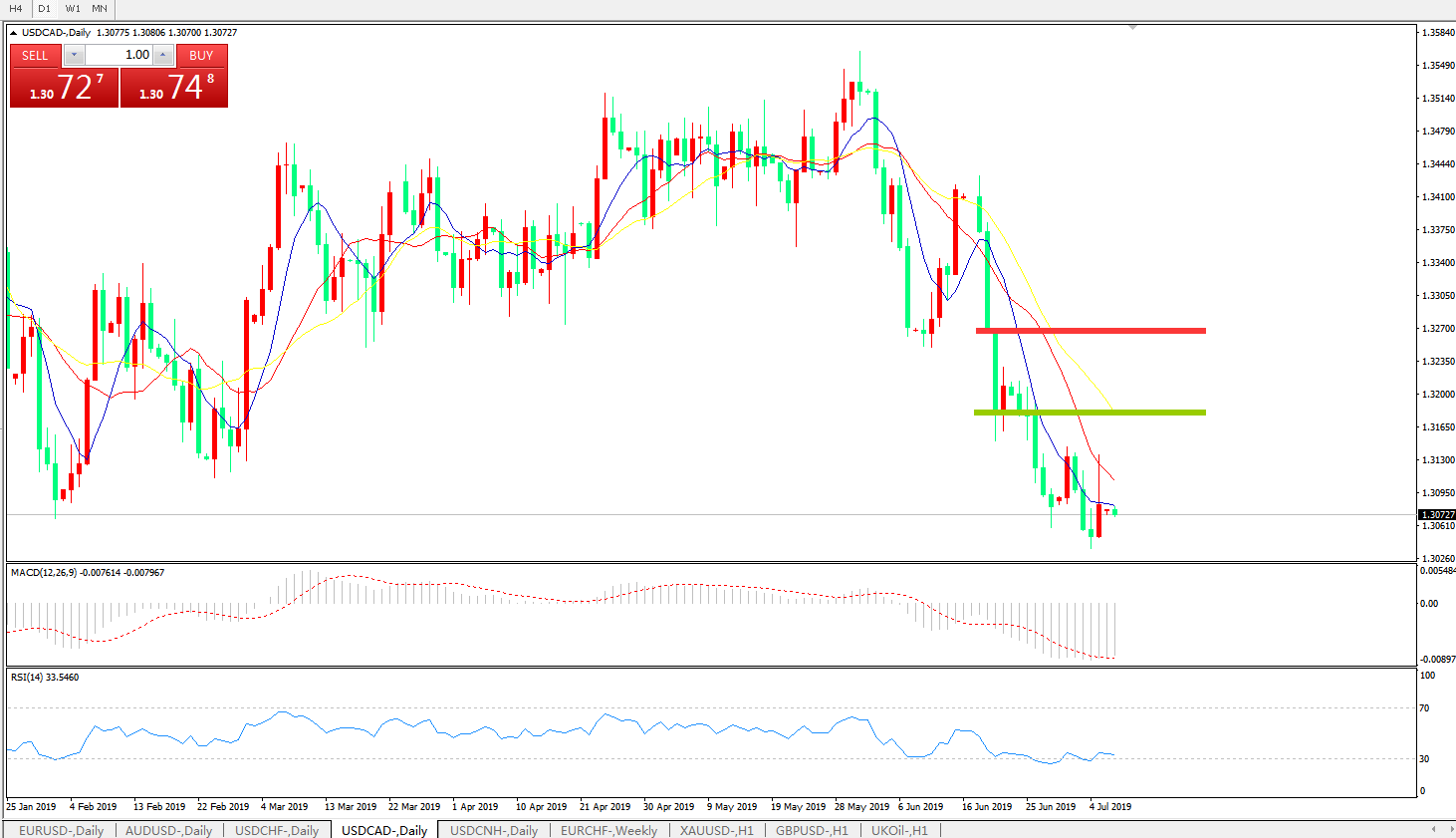 美元兑加元USDCAD    日线图: