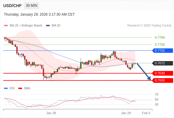 在 0.7725 之下,看跌,目标价位为 0.7630 ,然后为 0.7600 。