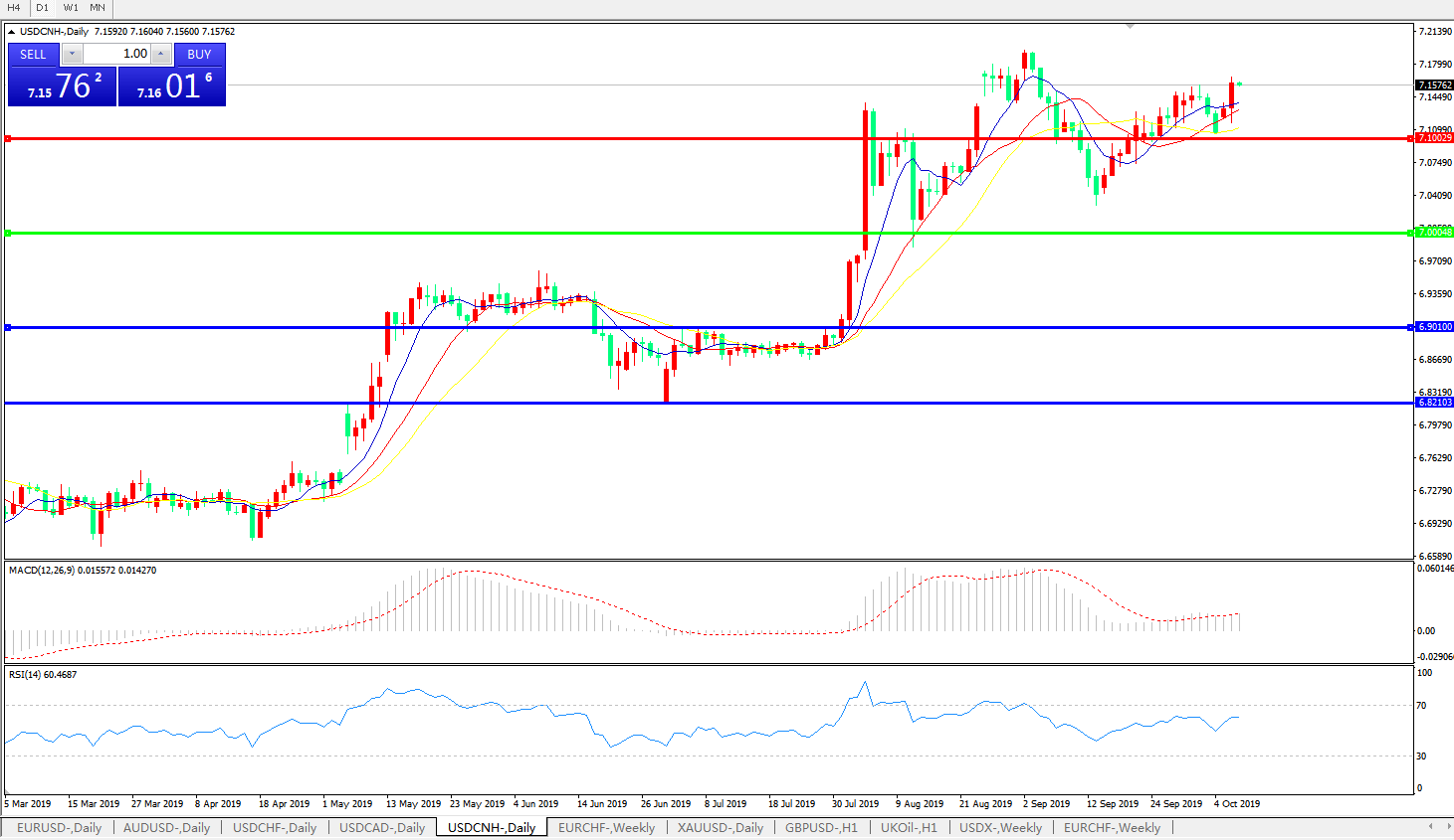 交易策略: 在7.0000之上,看涨,目标价位为7.1000,然后为7.2000。