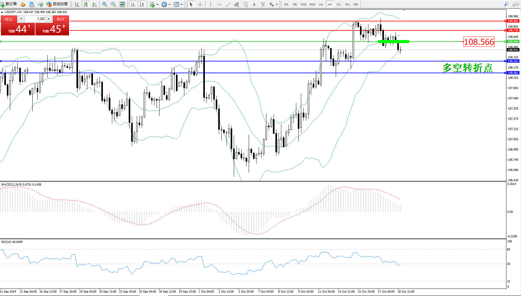 交易策略:108.566下方看跌,目标108.263、108.081