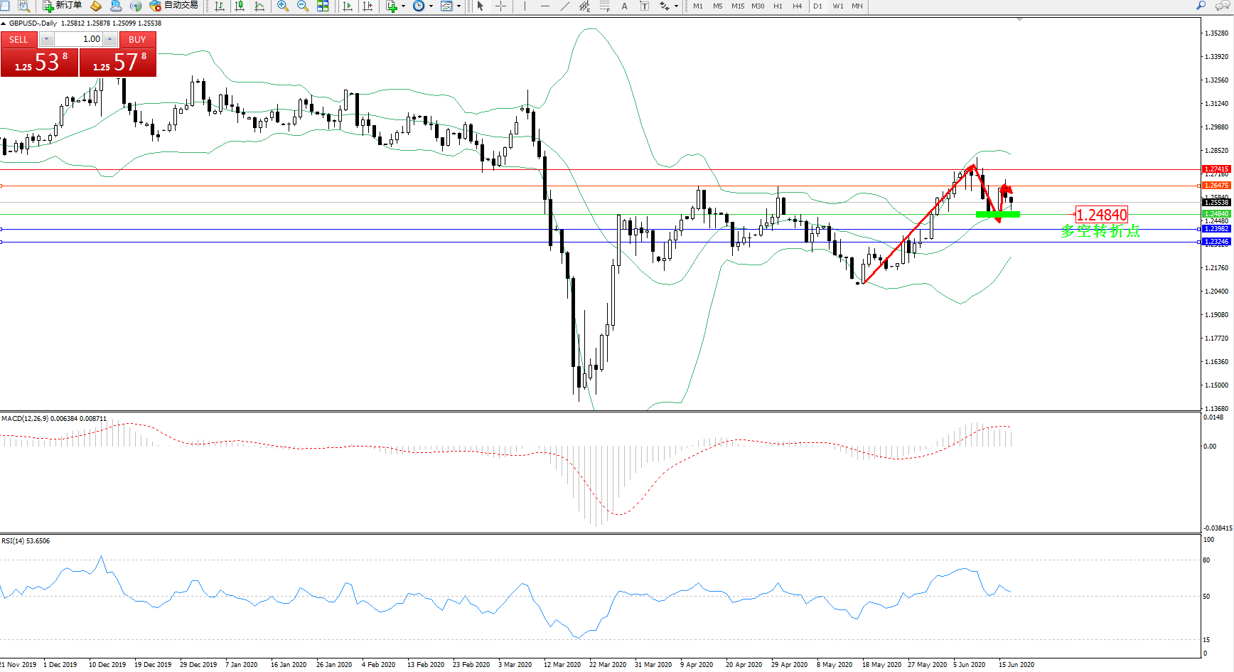 交易策略:1.24840上方看涨,目标1.264751.27415