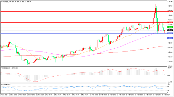 自上周开始,乌克兰硝烟骤起,俄乌冲突不仅触发地缘政治动荡,也掀起了全球资本市场的巨浪,现货黄金迅勐冲破1970后竟神奇反转一路跌破1880附近,收报1890.48美元/盎司。