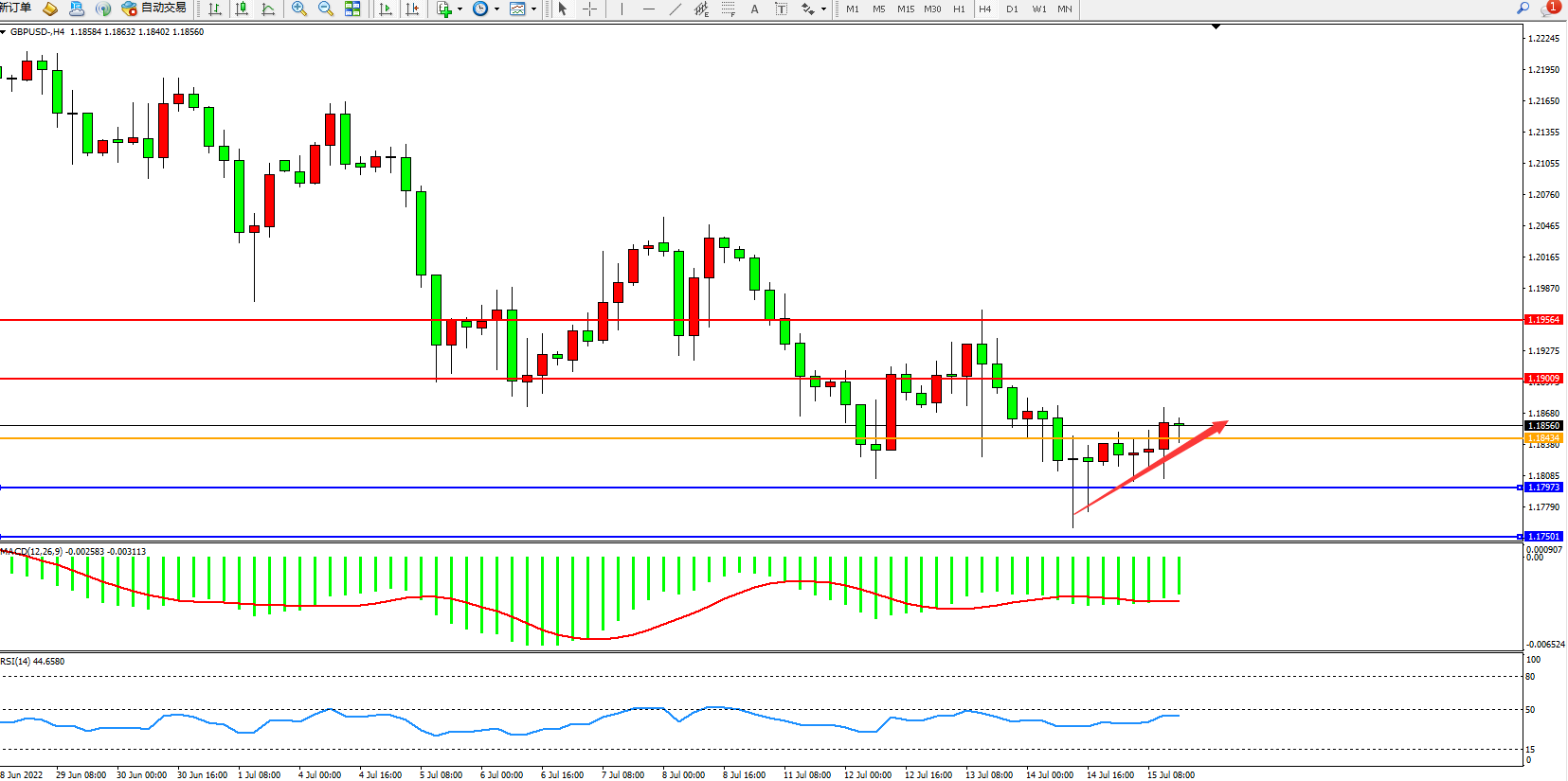 交易策略:1.18434上方看涨,目标1.19009、1.19564