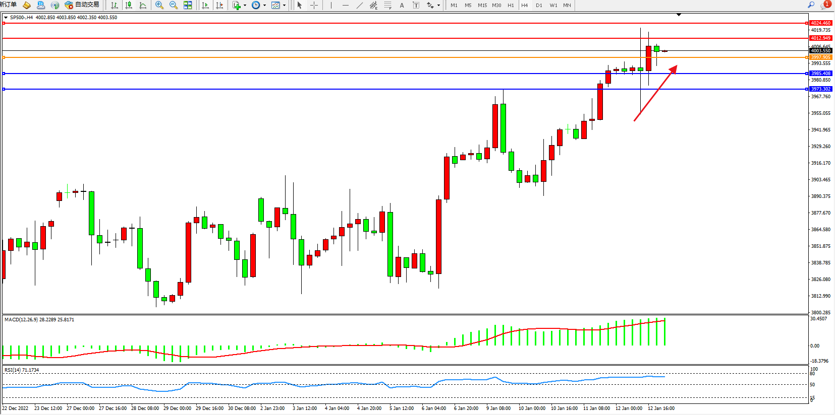 标普SP500——4小时K线图显示: